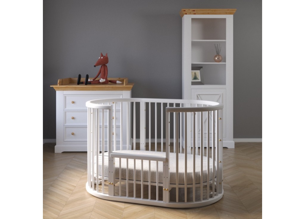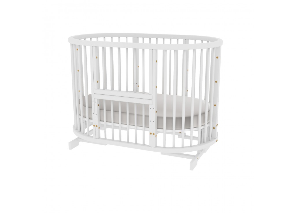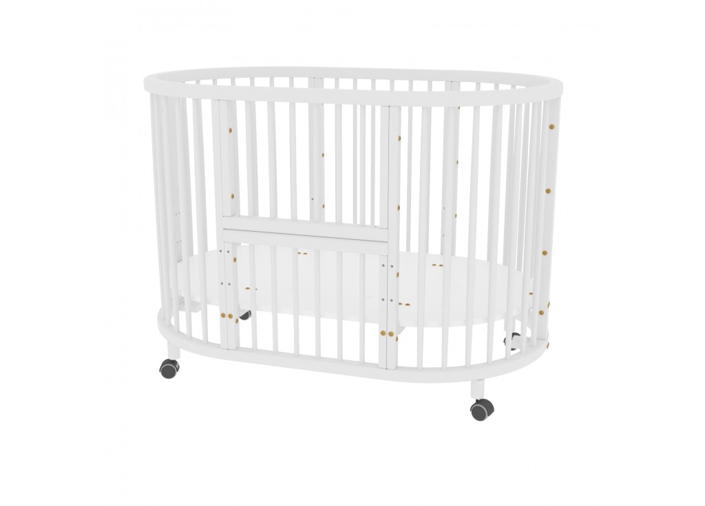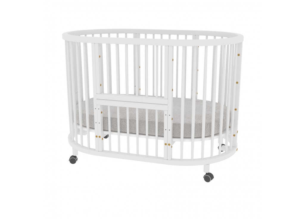 - Овальную кроватку (125х75см) можно установить на колёсики со стопорами.