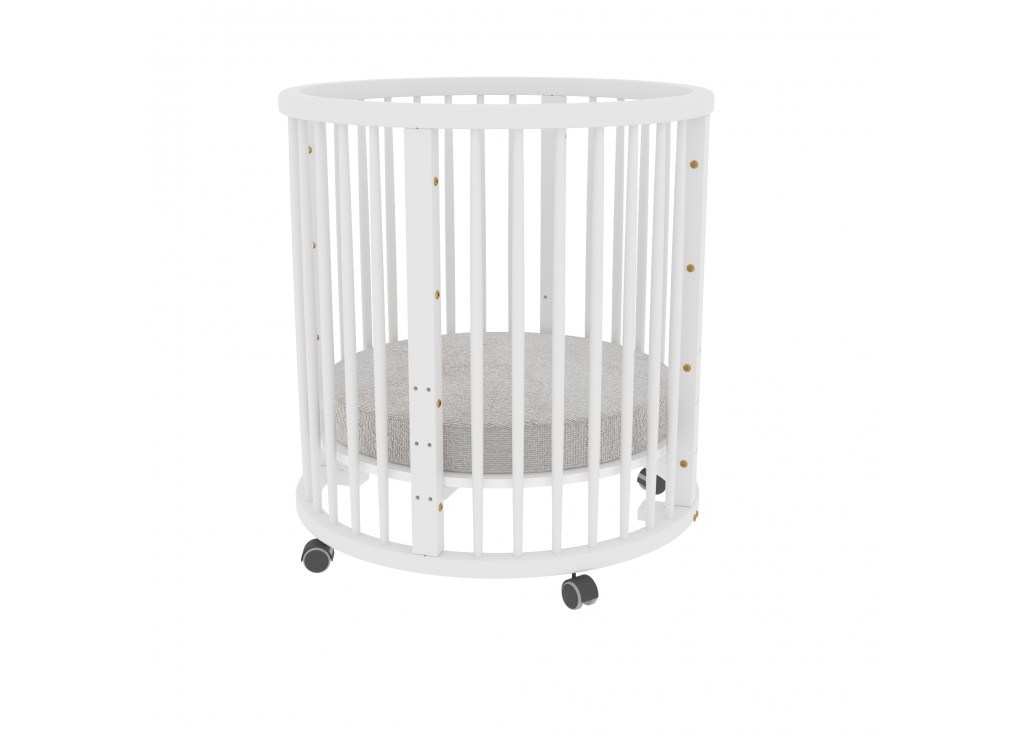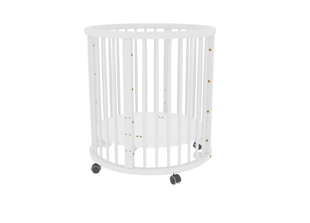 - Круглую кроватку можно установить на колёсики со стопорами.
