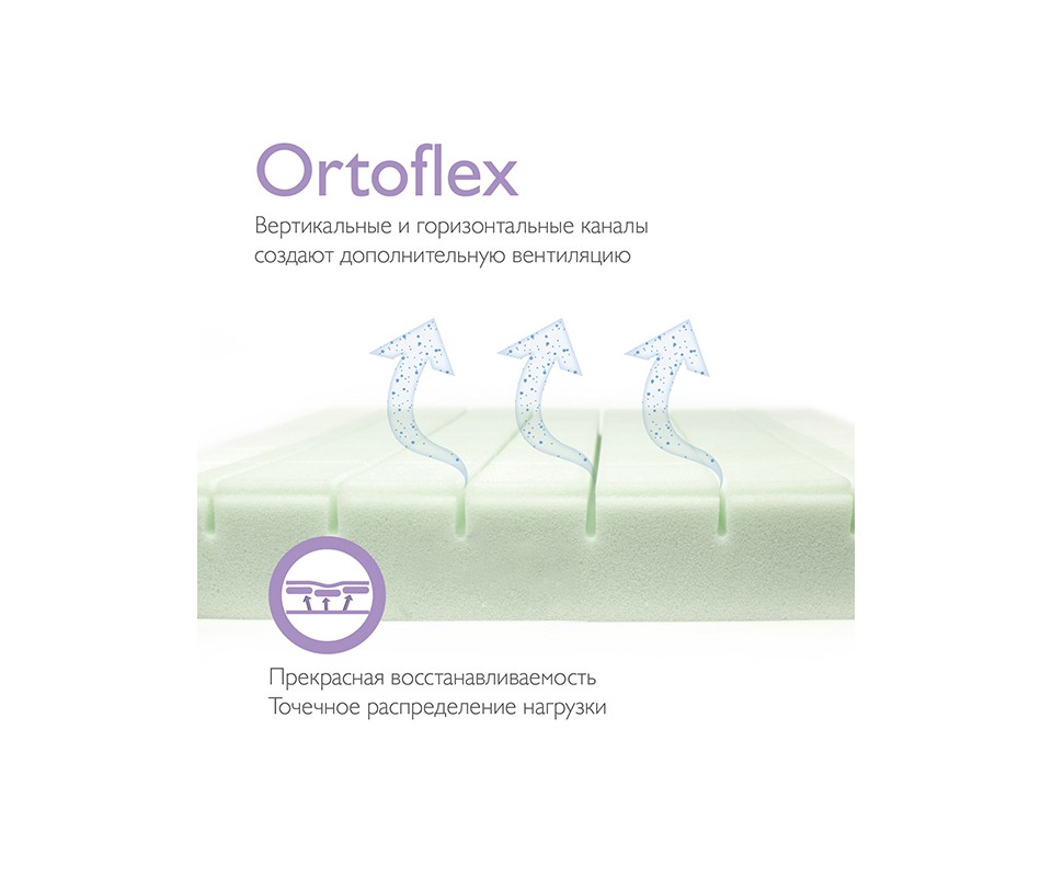 Пена Ortoflex помогает поддерживать позвоночник по время сна малыша в правильном положении и позволяет грамотно распределять нагрузку. Горизонтальные каналы на поверхности материала обеспечивают хороший температурный режим.