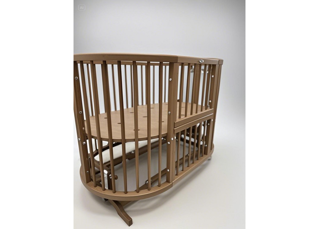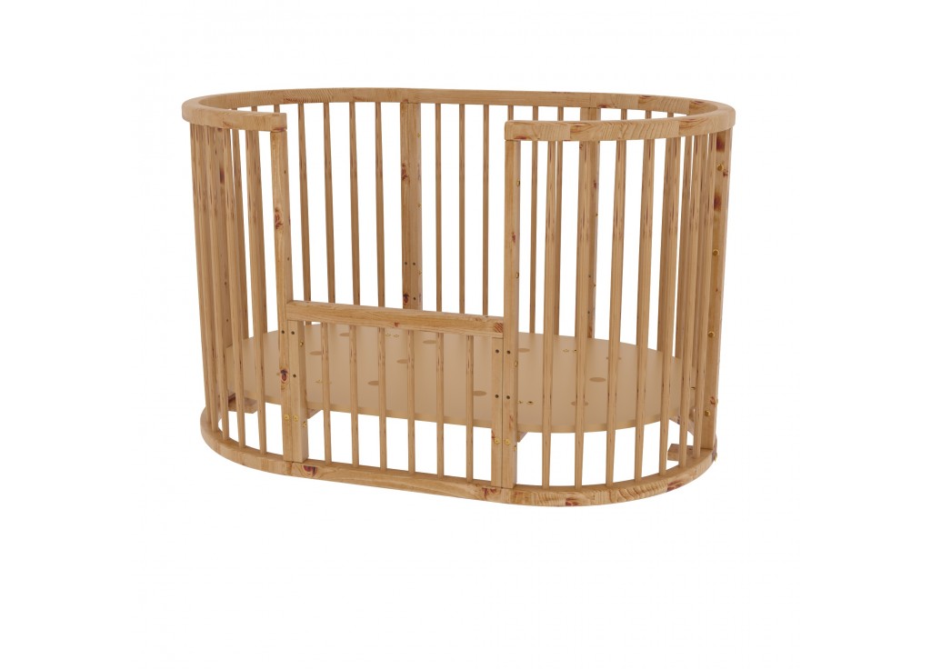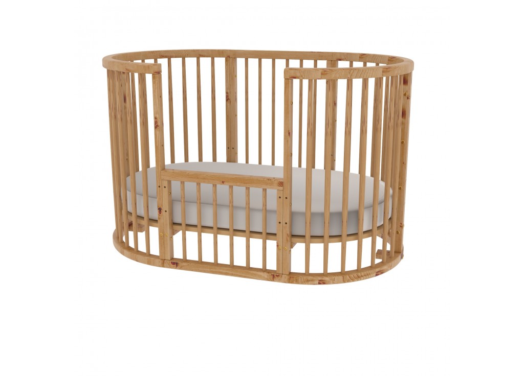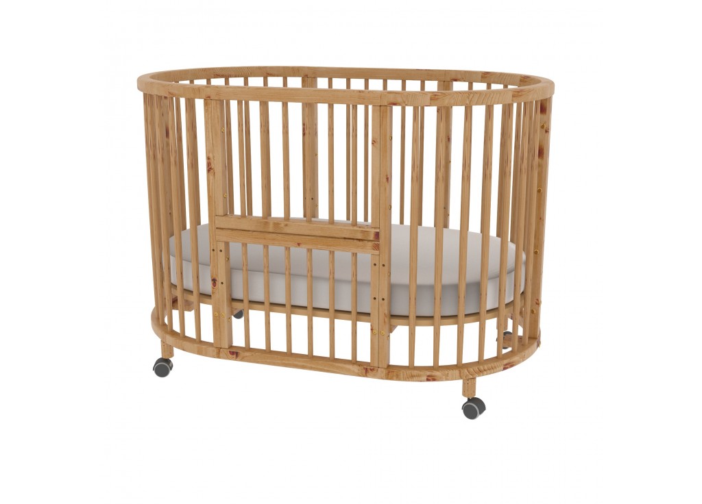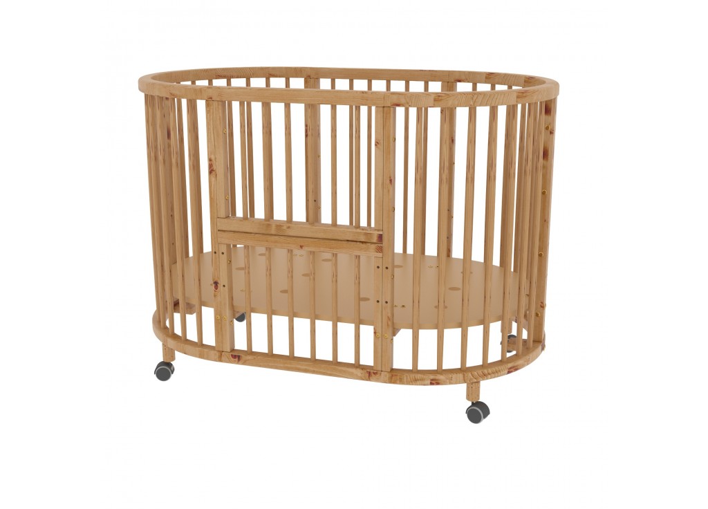- Овальную кроватку (125х75см) можно установить на колёсики со стопорами.