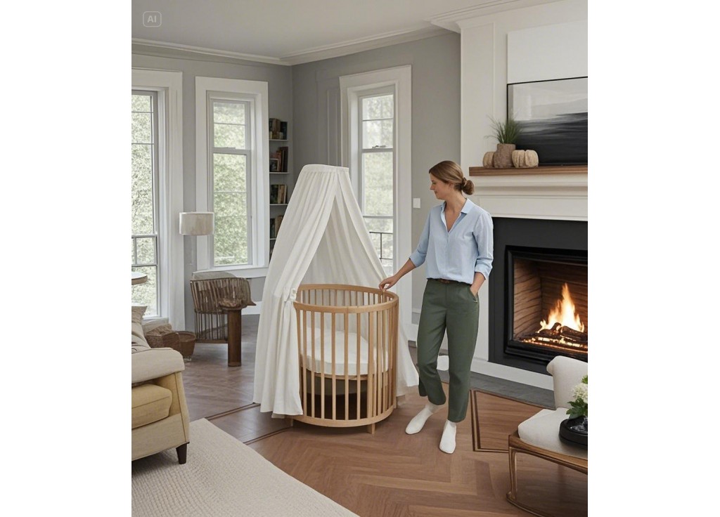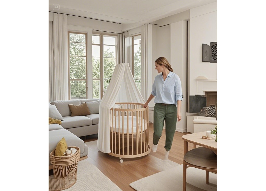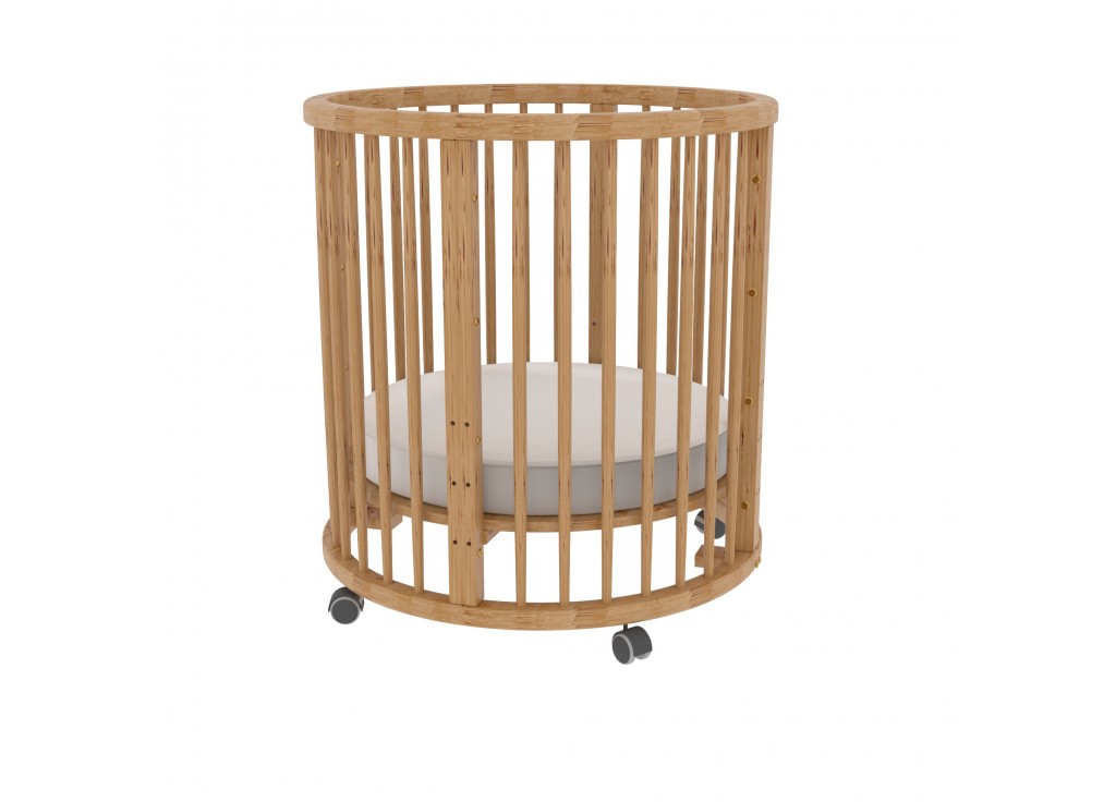 - Круглую кроватку можно установить на колёсики со стопорами.